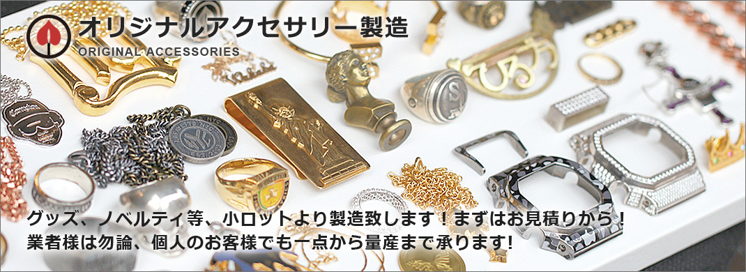 量産は勿論、個人のお客様からでも1点からオリジナルアクセサリー製作承ります。